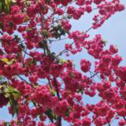 开的很艳丽,花朵和树都很旺盛,勃勃生机,